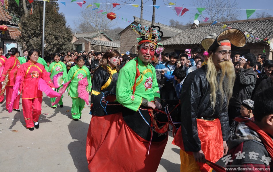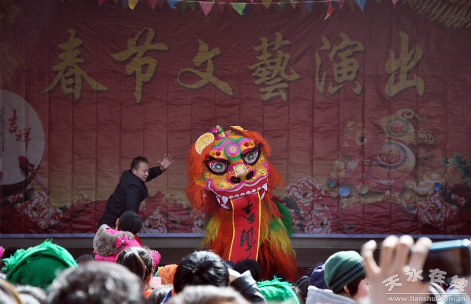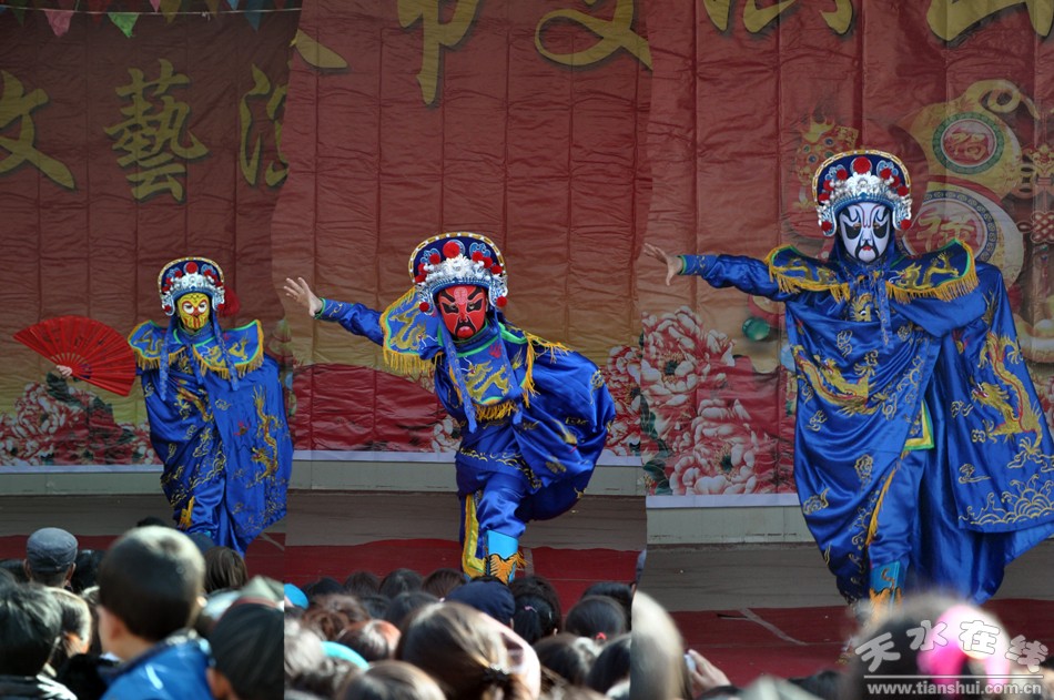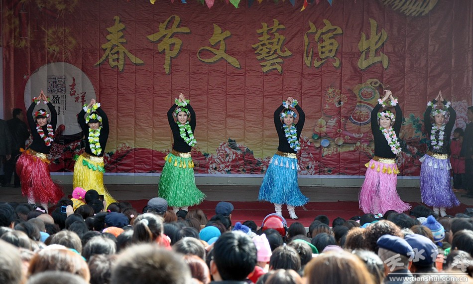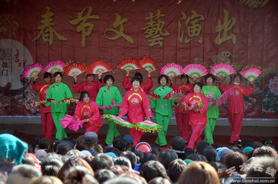 2013年2月15日(正月初六),麥積區(qū)溫家坪村鑼鼓喧天,人頭攢動,熱鬧非凡。這里正在進行著溫家坪村2013年春節(jié)文藝演出,天水市歌舞團專業(yè)演員為大家送上了動聽的歌曲、時尚的舞蹈以及變臉等,溫家坪村和鄰村凌溫村的村民自編自演的節(jié)目扭秧歌、耍社火,更是引得笑聲、掌聲不斷。