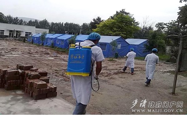 為了確保大災過后無大疫,馬跑泉鎮(zhèn)衛(wèi)生院組織人員堅持做到定時對該鎮(zhèn)大溝村安置點、胡王安置點進行集中消毒,對居民飲水進行漂白消毒,對產(chǎn)生垃圾進行及時集中處理,同時設立了發(fā)熱門診和腸道門診,做到疫情早發(fā)現(xiàn)、早報告、早隔離、早治療。
