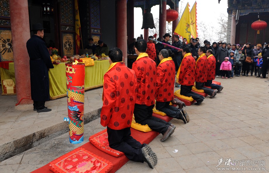 瑞雪迎春,渭水歡歌。2月14日(正月十五)上午,麥積區(qū)卦臺山鑼鼓喧天、彩旗飄飄,香燭縈繞、人頭攢動。10時50分許,由當?shù)馗鹘缛罕娮园l(fā)組織的2014(甲午)年民間祭祀中華人文始祖——太昊伏羲活動在這里隆重舉行,誠摯表達對人文始祖功德的緬懷與敬仰之情。