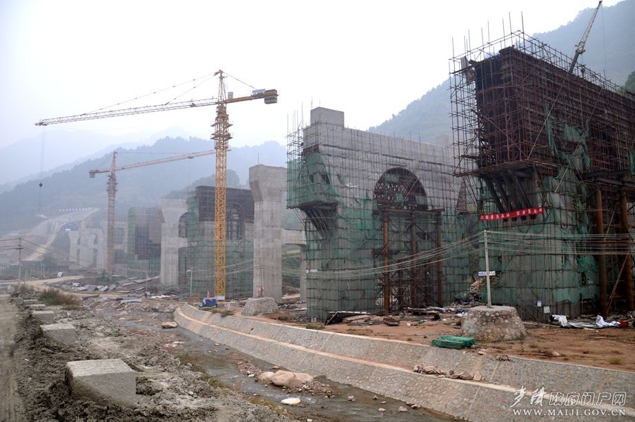 10月10日,時(shí)至深秋。街面上已經(jīng)有點(diǎn)寒意襲人,而位于東岔鎮(zhèn)境內(nèi)的寶蘭客專筆架山隧道交川溝特大橋建設(shè)現(xiàn)場(chǎng)卻是一派人頭攢動(dòng)、熱火朝天的大干景象。在施工工地現(xiàn)場(chǎng),中鐵十局負(fù)責(zé)人王文斌正帶領(lǐng)工人們爭(zhēng)分奪秒地加快鐵路項(xiàng)目建設(shè)。他告訴筆者:“筆架山隧道為寶蘭客專全線最大埋深的隧道,全長(zhǎng)14.7km,穿越交川溝與秦嶺溝之間的中高山,最大埋深715m;交川溝特大橋?yàn)楸緲?biāo)段最長(zhǎng)橋梁,橋長(zhǎng)1057.6m,最大橋高38m;東岔站就建在這里,是寶蘭客運(yùn)專線在天水境內(nèi)所設(shè)東岔、天水南、秦安3處中間站之一,設(shè)計(jì)停車時(shí)間2分鐘!