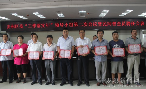 為進(jìn)一步貫徹落實市委“工作落實年”會議精神,切實抓好各項工作落實,9月1日,麥積區(qū)委召開“工作落實年”領(lǐng)導(dǎo)小組第二次會議暨民間督查員聘任會議。