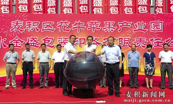 近年來,在市委、市政府的正確領(lǐng)導(dǎo)下,在市直相關(guān)部門的大力支持下,麥積區(qū)全力實施全市“48113”和全區(qū)“13565”現(xiàn)代農(nóng)業(yè)推進計劃,堅持把做大做強以“花牛”蘋果為主的果品產(chǎn)業(yè)作為加快發(fā)展現(xiàn)代農(nóng)業(yè)、促進農(nóng)民增收的重要措施來抓,相繼建成了一批建設(shè)規(guī)模大、標準化程度高的果品基地,全區(qū)林果種植面積達到65.4萬畝,果品總產(chǎn)值達到15.67億元,農(nóng)業(yè)產(chǎn)業(yè)化步伐不斷加快,農(nóng)業(yè)農(nóng)村經(jīng)濟穩(wěn)步發(fā)展,農(nóng)民收入持續(xù)增加。特別是天水花牛蘋果產(chǎn)業(yè)園的建設(shè),對于進一步發(fā)展壯大全區(qū)果品產(chǎn)業(yè),充分延伸產(chǎn)業(yè)鏈條,加快推進麥積區(qū)由果品基地建設(shè)大區(qū)向果品產(chǎn)業(yè)強區(qū)轉(zhuǎn)變,具有十分重要的意義。目前,總投資4.8億元的產(chǎn)業(yè)園一期工程累計完成投資2.51億元,路網(wǎng)、堤防等基礎(chǔ)設(shè)施基本完工,2萬噸氣調(diào)庫項目已建成并投入使用。金盛公司包裝箱生產(chǎn)線的投產(chǎn),將填補天水彩印包裝箱的行業(yè)空白,對于提升全區(qū)果品及其它各類產(chǎn)品包裝檔次,帶動當(dāng)?shù)厝罕娋蜆I(yè),加快產(chǎn)業(yè)園建設(shè)步伐,推動區(qū)域經(jīng)濟發(fā)展起到極大的推動作用。