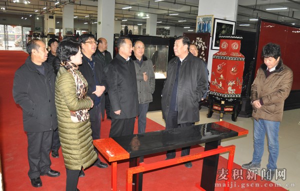 。ㄔ谔焖w天雕漆廠視察天水雕漆文化產(chǎn)業(yè)發(fā)展情況)