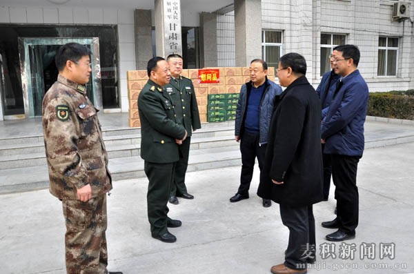 1月18日下午,麥積區(qū)區(qū)人大常委會主任賈應(yīng)珍帶領(lǐng)區(qū)人大辦、政府辦、民政局、文廣局、交通局、衛(wèi)計局、糧食局等部門負責人,對駐地部隊及部分重大項目建設(shè)單位進行了春節(jié)前走訪慰問,為他們送去了慰問品及最誠摯的新春祝福。