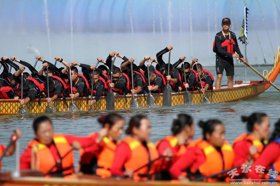 錦繡麥積,龍舟競(jìng)渡。6月24日,2017年中國龍舟公開賽(甘肅·天水·麥積站)暨中國·天水·麥積第三屆“伏羲杯”龍舟大賽在碧波蕩漾、景色秀美、風(fēng)光旖旎的麥積區(qū)翠湖公園水域擂響戰(zhàn)鼓、激情開槳。來自廣東、山東、浙江、貴州、四川、湖南、江蘇、南京等地的12支代表隊(duì)和來自秦州、甘谷、武山、清水、秦安、張川等縣區(qū)、天水師院及麥積區(qū)教體、衛(wèi)計(jì)、水務(wù)、林業(yè)等部門的11支代表隊(duì),分別在各自相關(guān)組別展開激烈角逐。