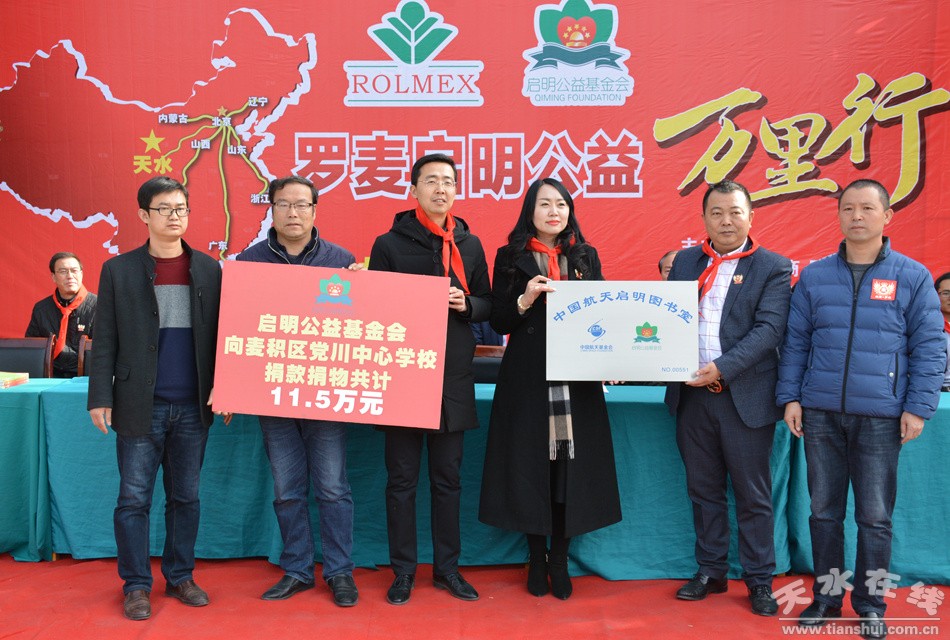 11月23日,在麥積區(qū)黨川中心學(xué)校,由天水市工商行政管理局、北京羅麥科技有限公司甘肅分公司啟明公益基金會(huì)聯(lián)合舉辦了愛心捐資助學(xué)活動(dòng),給學(xué)生們送去了課外圖書、電腦等教學(xué)器材,共計(jì)11.5萬(wàn)元。