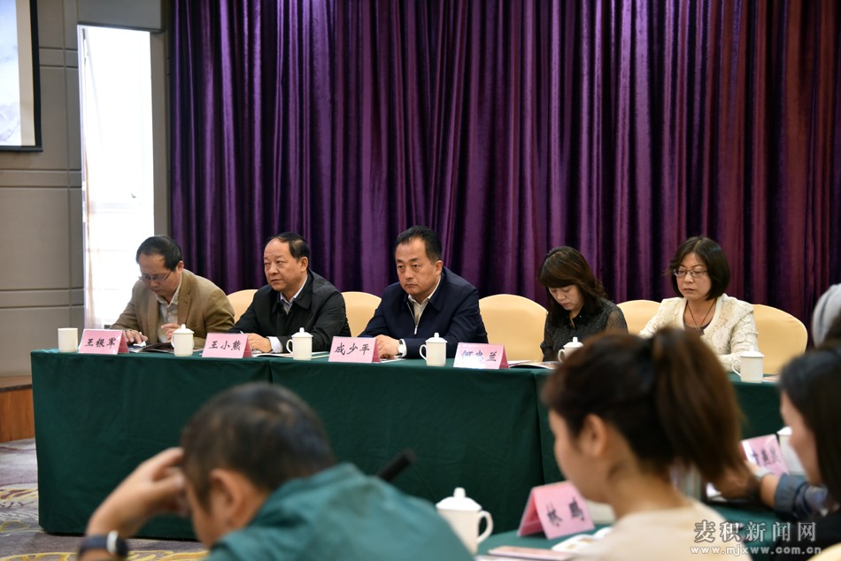 天水市委書記王銳,甘肅省委宣傳部原副部長、省廣電局原局長、《隴原妹子》總策劃張家昌,甘肅省新聞出版廣電局副局長范延軍,中宣部所屬電影頻道節(jié)目中心創(chuàng)作部副主任、《隴原妹子》監(jiān)制林麗寧,天水市委常委、宣傳部長蒲軍,副市長張建杰,市政協(xié)副主席、麥積區(qū)委書記張智明,市委宣傳部常務副部長王小熊,麥積區(qū)委副書記、區(qū)長成少平,市文化和旅游局局長李玉進,市婦聯(lián)主席何忠蘭,市文化和旅游局副局長李小敏,麥積區(qū)副區(qū)長成紅梅等出席見面會。