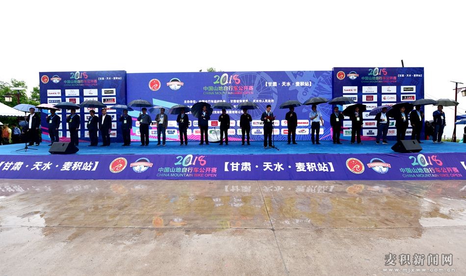 甘肅省政協(xié)副主席、天水市委書記王銳,天水市人大常委會(huì)主任、市委秘書長(zhǎng)、政法委書記蔣曉強(qiáng),甘肅省體育局副局長(zhǎng)劉新平,天水市委常委、副市長(zhǎng)王洪義,天水市政協(xié)副主席蘇定武,天水市政協(xié)副主席、麥積區(qū)委書記張智明,甘肅工業(yè)職業(yè)技術(shù)學(xué)院黨委副書記、院長(zhǎng)曹愛明,國(guó)家體育總局中國(guó)自行車運(yùn)動(dòng)協(xié)會(huì)競(jìng)賽部賽事專員鄭若飛,甘肅省體育局競(jìng)技體育處副處長(zhǎng)韓曉東,天水市政府副秘書長(zhǎng)邵宏偉,天水市委宣傳部副部長(zhǎng)、市伏羲文化研究中心主任裴貴軍,天水市體育局局長(zhǎng)黃嘯,麥積區(qū)人大常委會(huì)主任賈應(yīng)珍,麥積區(qū)委副書記、區(qū)長(zhǎng)成少平,秦州區(qū)委副書記、區(qū)長(zhǎng)劉文璽,麥積區(qū)政協(xié)主席楊續(xù)祥,甘肅省小隴山林業(yè)實(shí)驗(yàn)局工會(huì)主席安長(zhǎng)生,麥積山大景區(qū)管委會(huì)黨工委專職副書記楊斌,天水市政府節(jié)會(huì)辦公室副主任張曉鵬,麥積山石窟藝術(shù)研究所副所長(zhǎng)吳愛民,天水市體育運(yùn)動(dòng)學(xué)校黨總支書記薛俱增以及麥積區(qū)四大組織相關(guān)領(lǐng)導(dǎo)出席開幕式并為比賽鳴笛發(fā)令。