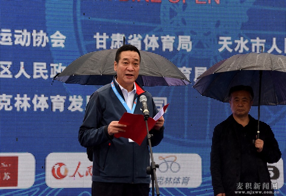 甘肅省體育局副局長(zhǎng)劉新平講話。天水市委常委、副市長(zhǎng)王洪義講話;天水市政協(xié)副主席、麥積區(qū)委書記張智明致辭;麥積區(qū)委副書記、區(qū)長(zhǎng)成少平主持開幕式。