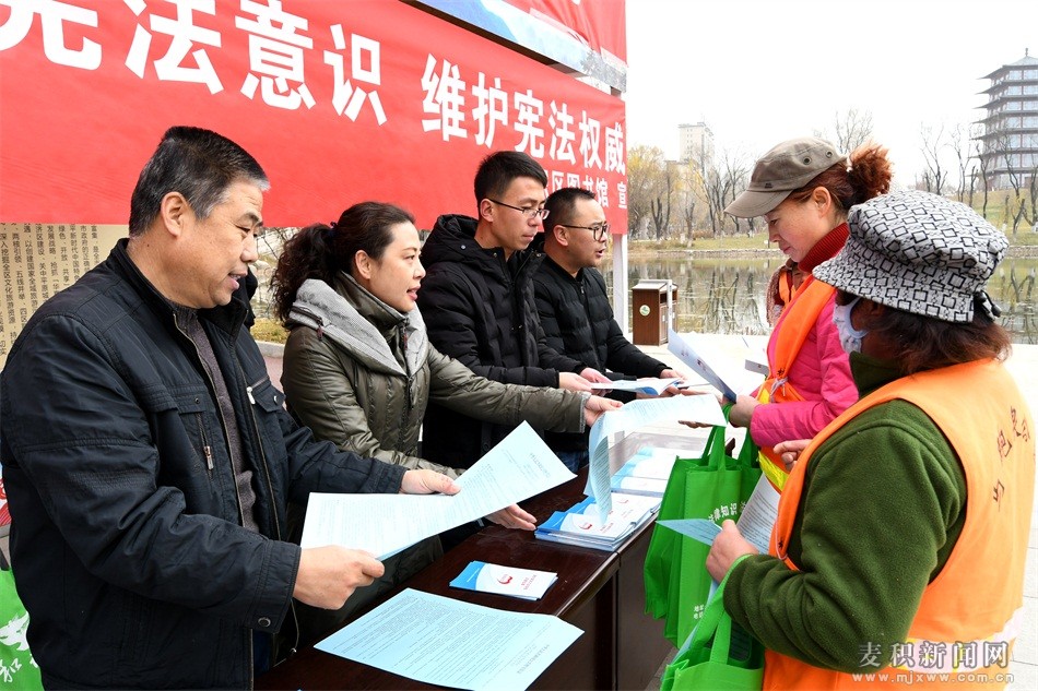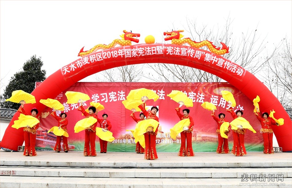 為進(jìn)一步增強(qiáng)人民群眾的憲法意識(shí),在第五個(gè)國(guó)家憲法日之際,由麥積區(qū)委宣傳部、麥積區(qū)司法局主辦的“12·4”國(guó)家憲法日暨憲法宣傳周——“尊崇憲法,學(xué)習(xí)憲法,遵守憲法,維護(hù)憲法,運(yùn)用憲法”主題宣傳文藝演出在馬跑泉公園舉行,與此同時(shí),在全區(qū)各鎮(zhèn)村、街道社區(qū)同步開展國(guó)家憲法日宣傳活動(dòng),進(jìn)一步弘揚(yáng)憲法精神,樹立憲法權(quán)威,構(gòu)建法治麥積。