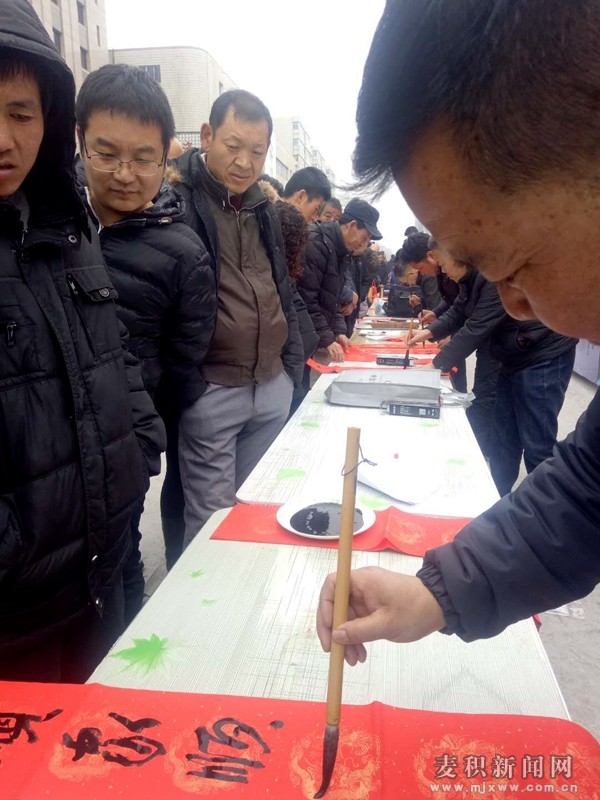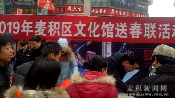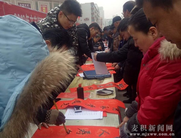 此次活動為麥積區(qū)2019年春節(jié)系列文化活動之一,當(dāng)天共為群眾免費書寫春聯(lián)800多幅。
