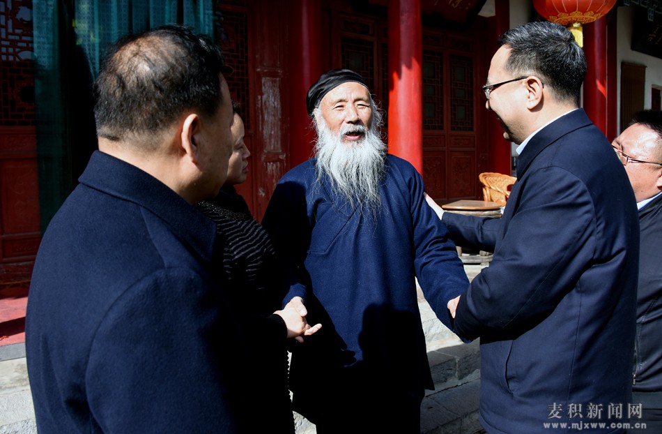 帶著家鄉(xiāng)人民的新春祝福,2月3日,天水市政協(xié)副主席、麥積區(qū)委書記張智明,區(qū)人大常委會主任、區(qū)委常委、組織部部長趙繼文,區(qū)政協(xié)主席、馬跑泉鎮(zhèn)黨委書記高志強,區(qū)人大常委會副主任竇順良、副區(qū)長成紅梅等四大組織領導一行專程赴陜西周至縣樓觀臺,看望了全國政協(xié)常委、全國政協(xié)民族和宗教委員會副主任、中國道教協(xié)會咨議委員會主席任法融,并送去了麥積區(qū)65萬人民的良好祝愿和新春祝福。