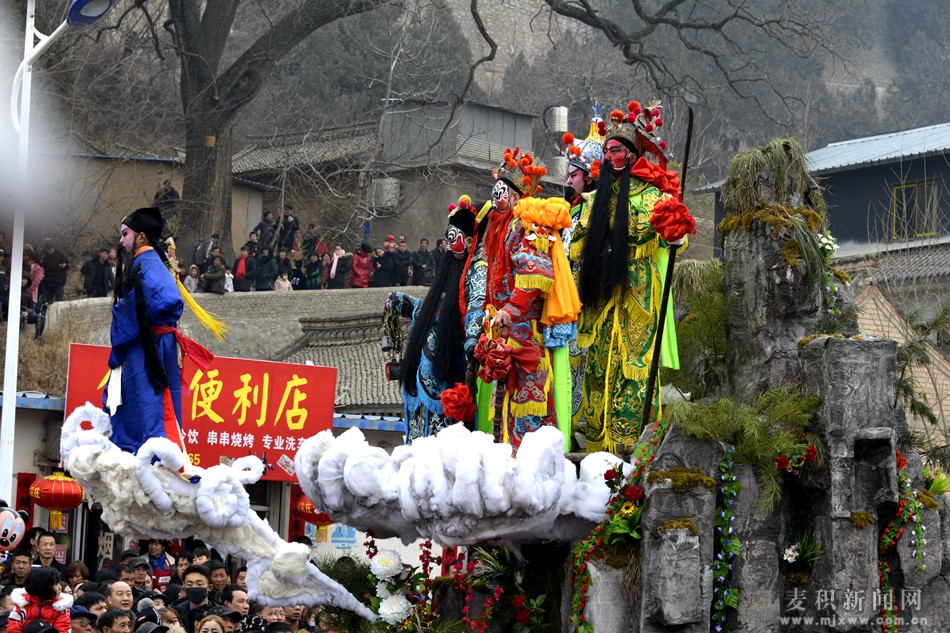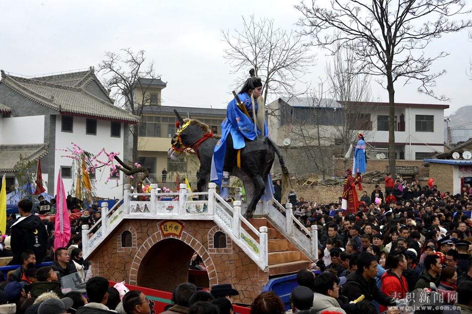當(dāng)日,來自街亭村、楊河村、宏羅村、南家山村等周邊鎮(zhèn)村組織的十多支社火隊匯集古鎮(zhèn)進行了匯演,舞獅子、扭秧歌、跑旱船、彩車、高抬傳統(tǒng)社火項目各具特色,異彩紛呈,活動吸引了十里八鄉(xiāng)的數(shù)萬名群眾在街亭村趕廟會,感受街亭古鎮(zhèn)深厚獨特的傳統(tǒng)民俗文化。
