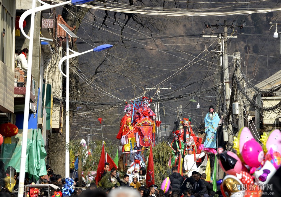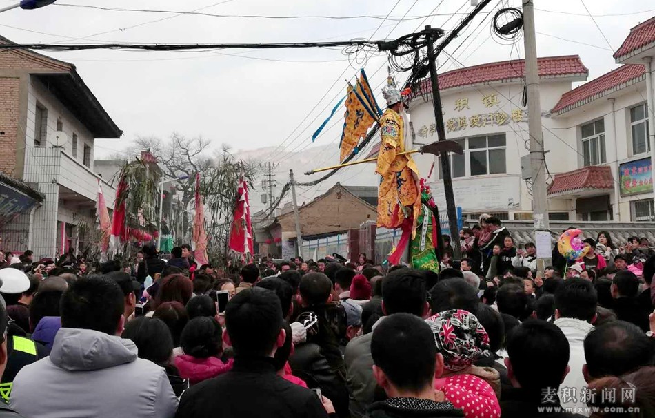 震天的鑼鼓敲起來、歡快的秧歌扭起來。2月13日(農(nóng)歷正月初九),是天水市麥積區(qū)麥積鎮(zhèn)街亭古鎮(zhèn)一年一度的傳統(tǒng)文化鄉(xiāng)俗——“上九”廟會。街亭古鎮(zhèn)人頭攢動、熱鬧非凡、年味十足,街亭古鎮(zhèn)“上九會” 社火匯演活動給廣大群眾奉獻了一場喜慶祥和、歡樂豐盛的“文化大餐”。