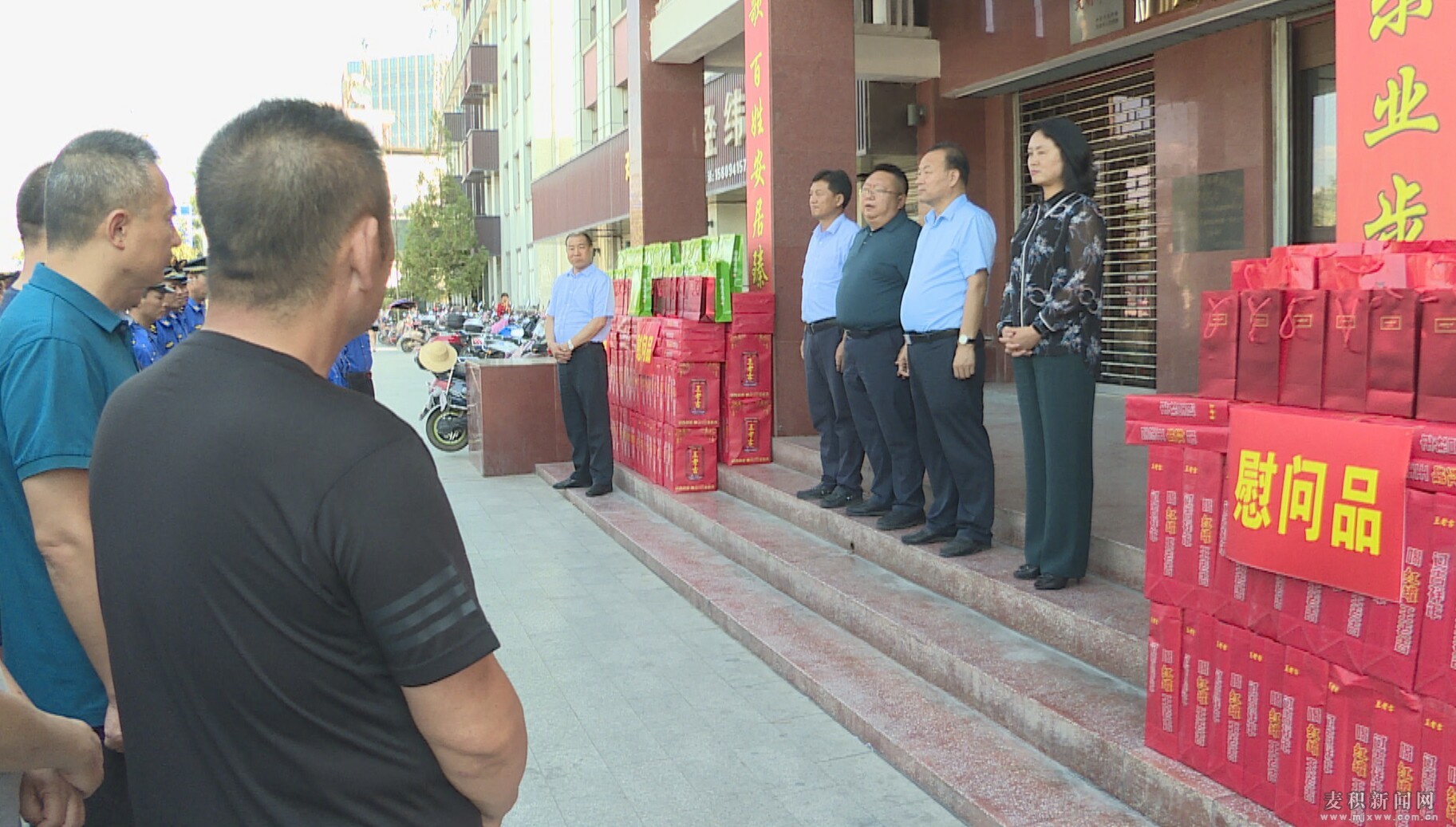 麥積區(qū)融媒體中心訊(記者 龍云飛) 連日來,驕陽似火,持續(xù)高溫。8月14日下午,麥積區(qū)人大常委會主任趙繼文,區(qū)政協(xié)主席高志強等四大組織領導帶領區(qū)總工會負責人,看望慰問奮戰(zhàn)在高溫一線的廣大干部職工,為他們送去了夏季防暑消暑慰問品,送上了區(qū)四大組織誠摯的問候與祝福,為一線的干部職工帶來了絲絲“清涼”。 區(qū)領導杜崢嶸、杜根祥、成紅梅等一同慰問。