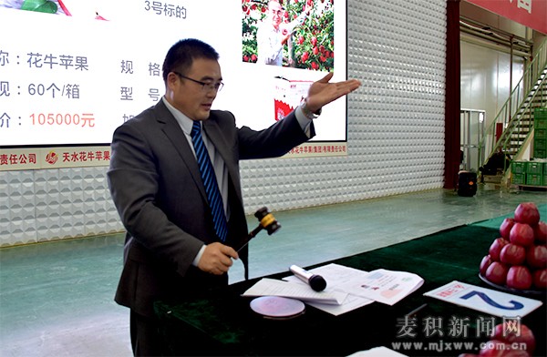 活動(dòng)吸引來自廣西、湖南、上海3家企業(yè)及當(dāng)?shù)?位競買人參加競拍,此次競拍標(biāo)的均來自麥積區(qū)貧困戶,分別是1號標(biāo)的每箱8盒裝的花牛蘋果100箱,二號標(biāo)的散裝花牛蘋果10噸,三號標(biāo)的物散裝花牛蘋果10噸,經(jīng)過一番競爭,最終來自廣西、湖南、上海的客商分別以16000元、135000元、140000的價(jià)格拍得1、2、3號標(biāo)的物,F(xiàn)場對“花牛王”蘋果的拍賣,將活動(dòng)推入高潮,最終來自麥積區(qū)馬跑泉鎮(zhèn)的當(dāng)?shù)馗傎I人以1688元的價(jià)格競得拍品。此次拍賣收入將全部捐給麥積區(qū)麥積鎮(zhèn)灘子村脫貧事業(yè)。