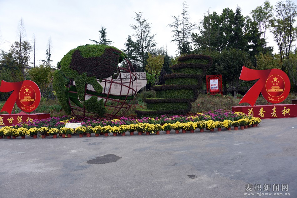 據(jù)悉,本次菊花展以“盛世華誕 菊香麥積”為主題,展期為9月29日至11月10日,為期42天。本屆菊花展圍繞慶祝中華人民共和國成立70周年這條主線,設(shè)置20多處大型景觀節(jié)點,共展出菊花20余萬盆。以營造喜慶、熱烈、祥和的氛圍為格調(diào),巧妙利用公園的廊、亭、臺、榭、橋等園林設(shè)施,依托公園現(xiàn)有的雕塑、景墻、水體等各種景觀元素,融合傳統(tǒng)與現(xiàn)代園藝,借助綠色雕塑和博古架、扇面、屏風、陶罐等中國傳統(tǒng)文化元素,運用借景、框景等藝術(shù)手法布景造型,充分展現(xiàn)深厚的菊文化和現(xiàn)代園藝水平,謳歌中華人民共和國成立70周年取得的豐功偉績和人民的美好生活。