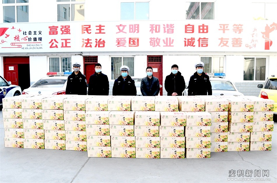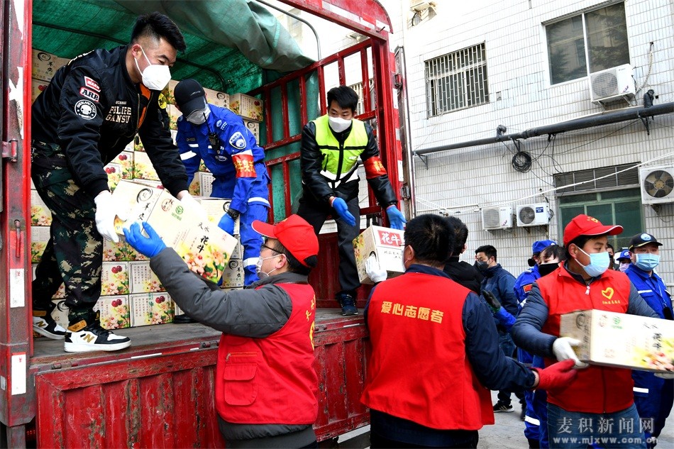 麥積區(qū)融媒體中心訊(特約記者 竇耀輝)疫情就是命令,防控就是責(zé)任。在決戰(zhàn)新冠狀肺炎疫情的關(guān)鍵時(shí)刻,2月16日,麥積區(qū)工信局、區(qū)果業(yè)發(fā)展中心協(xié)同天水昊源農(nóng)藝有限公司和麥積區(qū)石佛鎮(zhèn)天澤果品農(nóng)民專業(yè)合作社兩家果品企業(yè),為奮戰(zhàn)在一線的麥積公安分局、交警大隊(duì),橋南、道北和北道埠街道辦事處以及各鎮(zhèn)、基層衛(wèi)生院等抗“疫”前線捐贈(zèng)2000箱花牛蘋果,為一線民警、社區(qū)工作者和基層醫(yī)務(wù)人員奉獻(xiàn)愛心,助力打贏疫情防控阻擊戰(zhàn)。