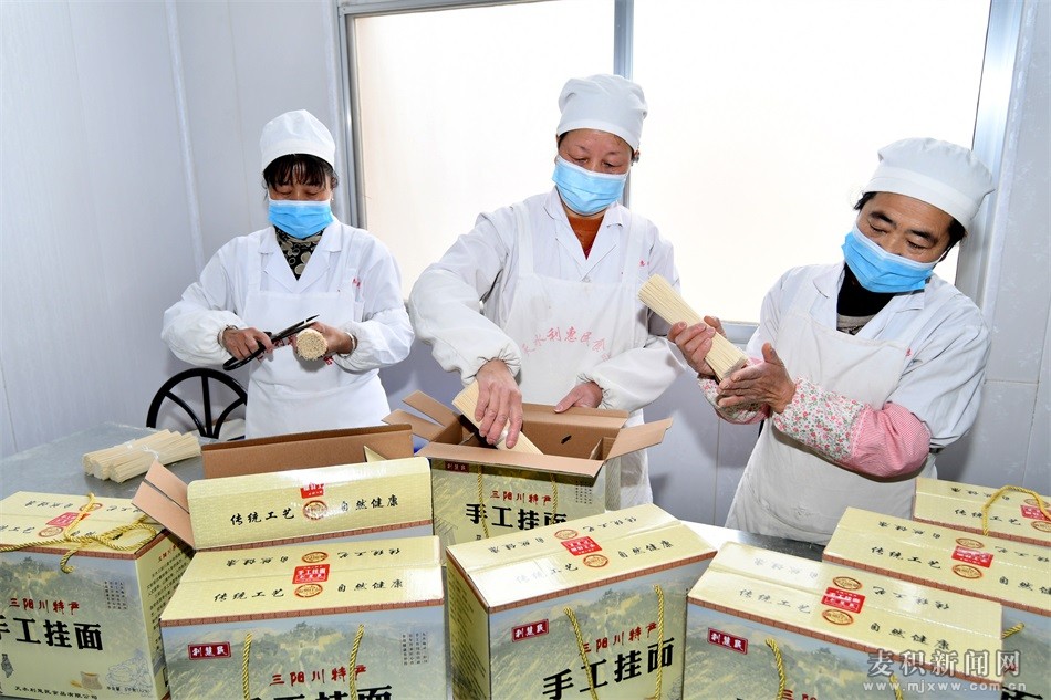 三陽(yáng)川的手工掛面歷史悠久、工藝精湛、口味純正、老少皆宜,深受消費(fèi)者青睞,但受制于生產(chǎn)時(shí)間短、產(chǎn)量低,常常供不應(yīng)求,如今生產(chǎn)經(jīng)營(yíng)采用公司集約化模式,科學(xué)技術(shù)成了第一生產(chǎn)力,有效解決了生產(chǎn)過(guò)程中的難題,實(shí)現(xiàn)產(chǎn)品有求必應(yīng),同時(shí)拉動(dòng)了附近10多位村民就業(yè)創(chuàng)收,做到了顧家掙錢“兩不誤”。抻面工人劉茜對(duì)記者說(shuō):“我是楊家莊村建檔立卡貧困戶,自打去年利慧民公司開業(yè)以來(lái),我一直在這里上班,我家也顧了、錢也掙了,在這里一個(gè)月收入2100塊錢,挺好的!