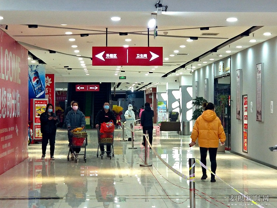 記者在浙加都超市入口看到門口張貼著健康碼、行程碼,配備了消毒液以及測(cè)溫設(shè)備,老板員工齊上陣,引導(dǎo)顧客保持安全間隔距離!霸趨^(qū)委、區(qū)政府的領(lǐng)導(dǎo)下,群防群控,聯(lián)防聯(lián)治,麥積區(qū)疫情形勢(shì)明顯好轉(zhuǎn)。近兩天來,進(jìn)入超市的顧客明顯增多,但是防疫工作我們?nèi)圆凰尚,?yán)格執(zhí)行一日三次的消殺工作,我們超市會(huì)持續(xù)嚴(yán)格執(zhí)行防疫工作的各項(xiàng)要求,努力做好物資供應(yīng)工作!闭慵佣汲械觊L(zhǎng)王云霞說。