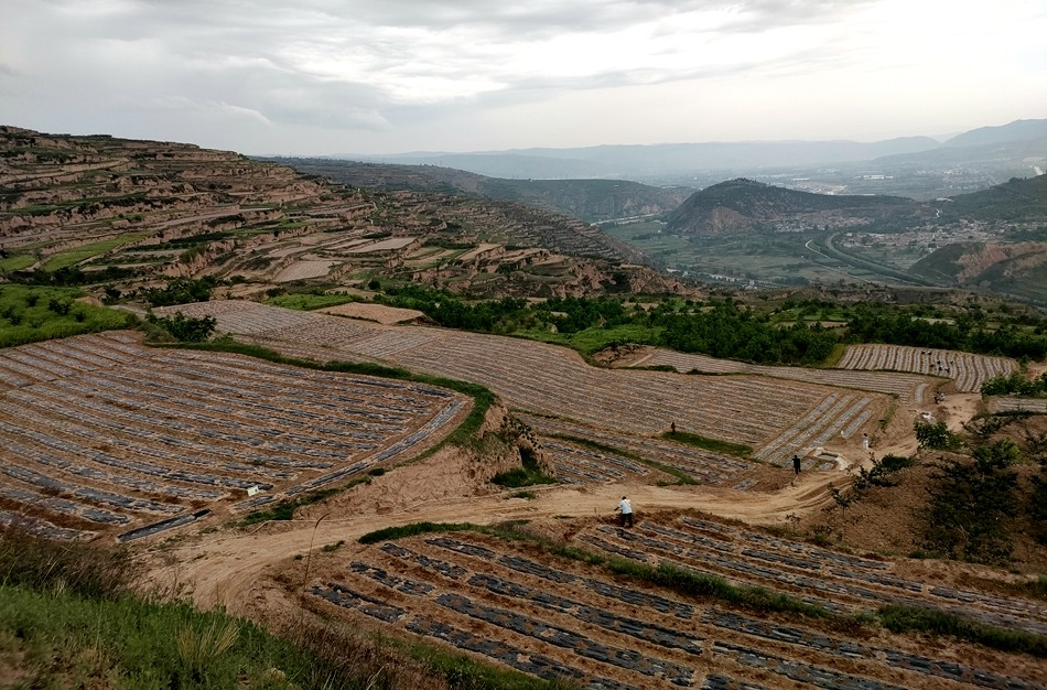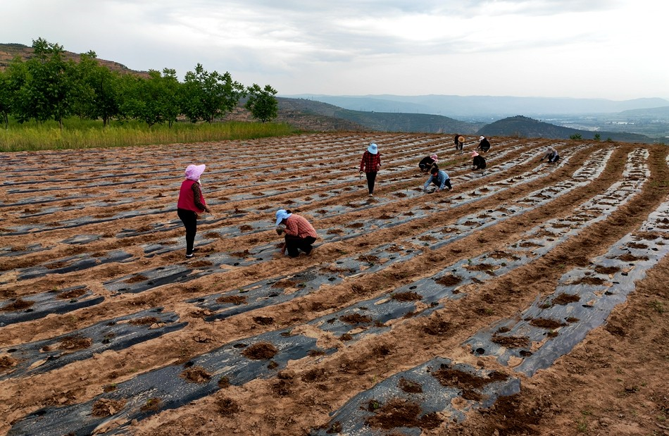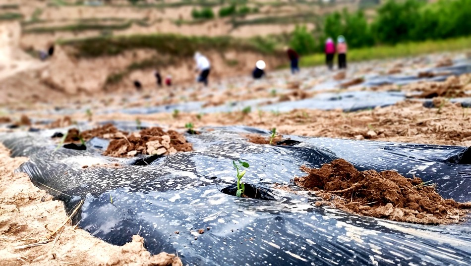 近日,記者來(lái)到中灘鎮(zhèn)余家峽村撂荒地治理示范點(diǎn),站在田埂上向遠(yuǎn)望去,滿眼都是一片片鋪著黑色地膜的梯田;向近處看,忙碌的村民正在地膜上補(bǔ)種架豆,大家分工合作,忙碌而有序。誰(shuí)能想到,就在去年這里還是一片荒草叢生的撂荒地。如今,這片300多畝的撂荒地披上了新裝,充滿了生機(jī)。