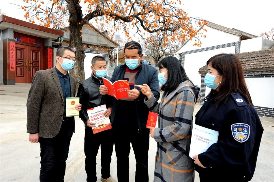 麥積區(qū)融媒體中心訊(特約記者 竇耀輝)11月9日,麥積區(qū)社棠鎮(zhèn)郭坪村“法律明白人”串門入戶帶領(lǐng)廣大群眾學(xué)習(xí)《中華人民共和國民法典》。如今,“法律明白人”已成為麥積區(qū)鄉(xiāng)村法治建設(shè)的法治宣傳員、糾紛調(diào)解小能手、鄉(xiāng)村治理土專家和全民學(xué)法普法的“領(lǐng)頭雁”。
