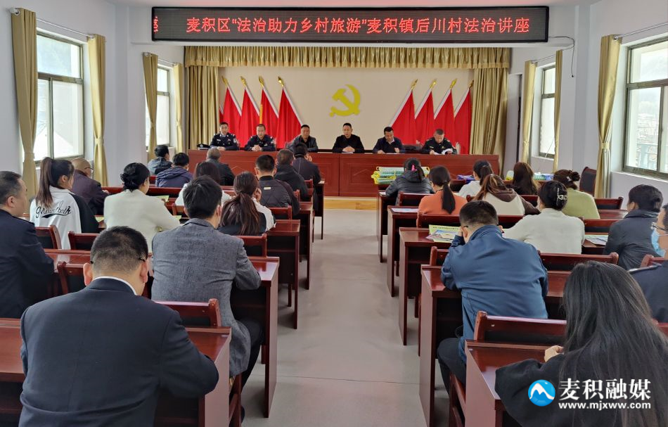 因地制宜發(fā)展鄉(xiāng)村旅游,法治保障服務(wù)鄉(xiāng)村振興,通過(guò)深化法治鄉(xiāng)村建設(shè),使遵法、學(xué)法與和美鄉(xiāng)村建設(shè)進(jìn)一步有機(jī)融合。“我們今天到麥積鎮(zhèn)后川村來(lái)進(jìn)行‘法治助力鄉(xiāng)村旅游’集中法治講座和宣傳活動(dòng),目的是通過(guò)向經(jīng)營(yíng)戶大力宣傳法律知識(shí),讓他們學(xué)法、懂法、用法,依法經(jīng)營(yíng)、合法經(jīng)營(yíng)、規(guī)范經(jīng)營(yíng),以法治力量來(lái)保障我們的鄉(xiāng)村振興,建設(shè)和美鄉(xiāng)村!丙湻e區(qū)司法局副局長(zhǎng)李永生說(shuō)道。