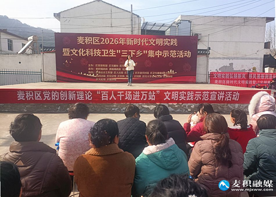 麥積區(qū)融媒體中心訊2月2日,麥積區(qū)黨的創(chuàng)新理論“百人千場進萬站”文明實踐示范宣講活動在元龍鎮(zhèn)杜家坪村正式啟動。該活動旨在推動習近平新時代中國特色社會主義思想及黨的二十屆四中全會精神在基層走深走實、見行見效。啟動儀式與麥積區(qū)新時代文明實踐暨文化科技衛(wèi)生“三下鄉(xiāng)”示范活動同步舉行,形成了理論宣講與惠民服務(wù)協(xié)同推進的生動局面。