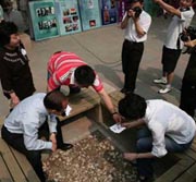 正式的節(jié)目做完了,下一個環(huán)節(jié)就是打掃社區(qū)的衛(wèi)生,每人給了一個抹布,在無數(shù)的攝像機和照相機前面打掃衛(wèi)生。但這個社區(qū)我想可能是為了做節(jié)目,座椅、欄桿上面等都已被打掃得干干凈凈,似乎沒有什么可打掃的了,于是,有人提議去旁邊的十字道路上撿煙頭,我想這倒是一個好主意。我撿了幾個煙頭,順便看了看這幾個煙頭的牌子,有“555”的,也有“紅塔山”的。這個令我尷尬的節(jié)目終于做完了,想一想起個大早,做的唯一有用的事就是撿了兩個煙頭。