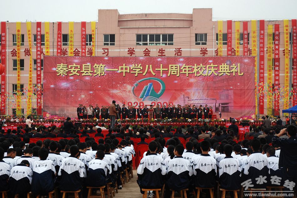 秦安一中創(chuàng)建于1929年,建校八十年來(lái),經(jīng)過(guò)26任校長(zhǎng)的勵(lì)精圖治和700多名教職工的辛勤耕耘,為社會(huì)培養(yǎng)各類(lèi)人才25000多名,向高等院校輸送了9157名優(yōu)秀學(xué)子,有11人被北大、清華錄取。近年來(lái),秦安一中在縣委、縣政府的正確領(lǐng)導(dǎo)和各級(jí)教育主管部門(mén)的大力支持下,秉承“仰高思齊,厚學(xué)致遠(yuǎn)”的校訓(xùn),按照“德智并舉,質(zhì)量興校,爭(zhēng)創(chuàng)一流,追求卓越”的辦學(xué)思路,團(tuán)結(jié)拼搏,開(kāi)拓奮進(jìn),實(shí)現(xiàn)了改革發(fā)展的歷史性飛躍,各項(xiàng)工作邁上了新的臺(tái)階。如今,該校已建設(shè)成為一所基礎(chǔ)條件優(yōu)越、育人環(huán)境優(yōu)良、師資力量雄厚、教學(xué)質(zhì)量較高、辦學(xué)特色鮮明的市級(jí)示范性獨(dú)立高中。