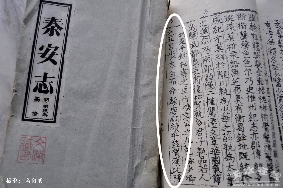 明代秦安籍進(jìn)士胡纘宗,官至河南巡撫,右副都御史,是著名的學(xué)者、詩人,撰有《秦安志》等多部著作。他在《秦邑賦》一文中歌詠了許多秦安籍歷代名人,李白名列其中:“詠少卿之五言,步太白而命騷!彼凇稒(quán)載之詩序》中寫道:“隴西有詩人曰李太白、權(quán)載之、李長吉!笨梢,胡纘宗也認(rèn)為李白是隴西成紀(jì)人。