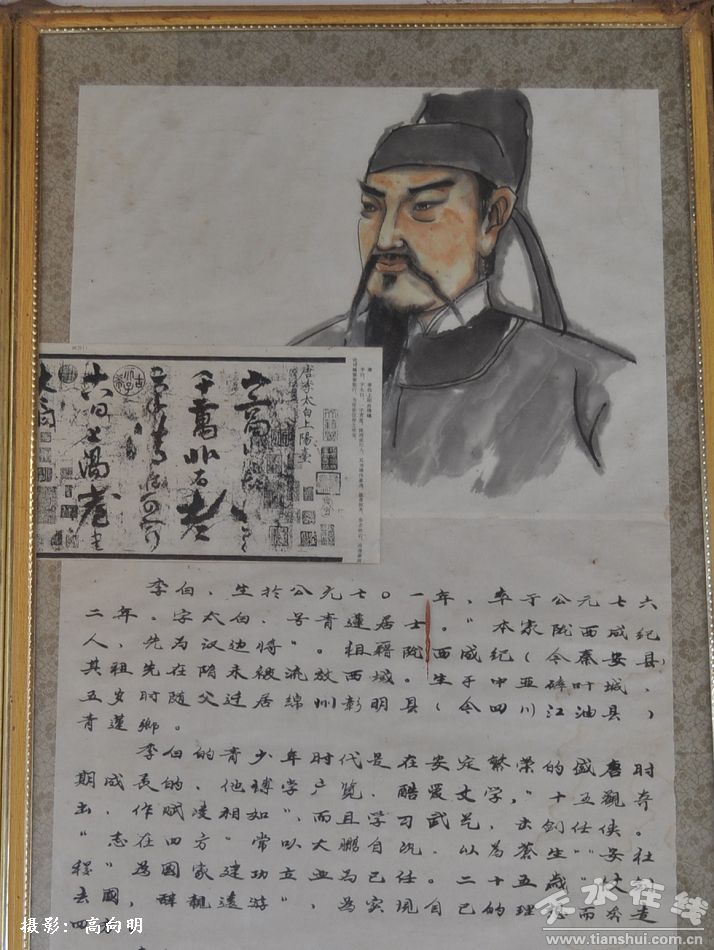 (位于秦安縣鳳山公園中的李白畫像和簡介)