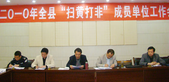 為了全面貫徹落實省、市“掃黃打非”工作會議精神,做好2010年全縣的“掃黃打非”工作,確保全縣意識形態(tài)安全和文化安全,4月28 日,秦安縣召開了2010年全縣“掃黃打非”成員單位工作會議?h直有關部門、駐秦有關單位和興國鎮(zhèn)政府的負責人共30人參加會議。會議由副縣長郭雙江主持,會上,縣委常委、宣傳部長李尚平作了講話,縣文化旅游局局長、縣“掃黃打非”工作領導小組辦公室主任馬明祥宣讀了《天水市2010年“掃黃打非”行動方案》。