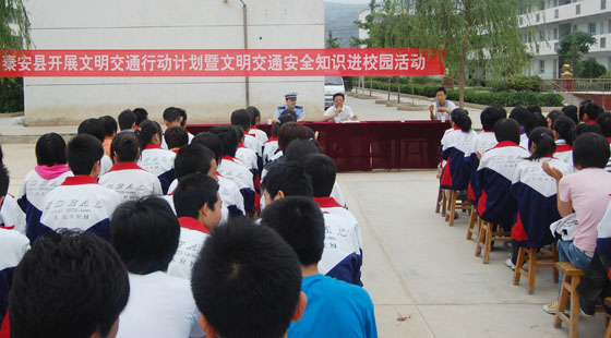 為了切實(shí)加強(qiáng)學(xué)校交通安全宣傳,提高中小學(xué)生交通安全意識(shí)和交通文明意識(shí),預(yù)防和減少涉及中小學(xué)生的道路交通事故,7月16日,縣委宣傳部、縣文明辦、縣教體局、縣交警大隊(duì)深入縣一中、二中、民生中學(xué)、五小、興國(guó)中學(xué)五所中小學(xué)校開展了以“關(guān)愛生命、文明出行”為主題的“文明交通行動(dòng)計(jì)劃暨文明交通安全知識(shí)進(jìn)校園”活動(dòng);顒(dòng)主會(huì)場(chǎng)設(shè)在縣五中,縣委常委、縣宣傳部長(zhǎng)李尚平,縣人大常委會(huì)副主任魏千乙、縣政府副縣長(zhǎng)郭雙江及縣文明辦、縣教體局等部門負(fù)責(zé)人參加了活動(dòng);顒(dòng)由縣政府副縣長(zhǎng)郭雙江主持,縣委常委、宣傳部長(zhǎng)李尚平作了重要講話。