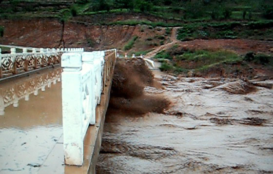 據(jù)了解,當(dāng)天下午,清水河上游突降特大暴雨,18時20分左右,洪水流經(jīng)上述三個鄉(xiāng)鎮(zhèn),致使五營鄉(xiāng)川區(qū)各村不同程度受災(zāi),其中邵店村、張原村蔬菜大棚全部被毀。隴城鎮(zhèn)以全膜洋芋受災(zāi)最為嚴重。蓮花鎮(zhèn)蓮花、馮溝、郭河、上河、桑川、仁義等村玉米、洋芋、果樹、蔬菜、西瓜、葵花等農(nóng)作物大面積受災(zāi),其中蓮花、馮溝兩村倒塌房屋17座,仁義村淹沒預(yù)制廠一處。目前,尚無人員傷亡的報告。三鄉(xiāng)鎮(zhèn)受災(zāi)詳情正在進一步統(tǒng)計之中。