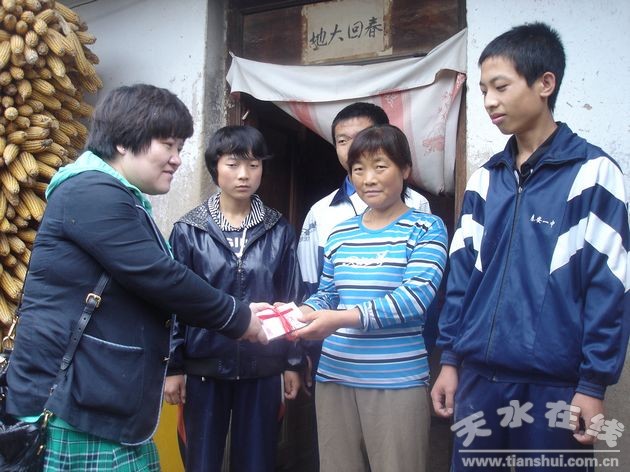 蘭州晨報(bào)天水訊(記者王蘭芳)今年夏季對(duì)于秦安縣西川鎮(zhèn)王灣村周雄鵬姐弟三人來(lái)說(shuō),是一個(gè)經(jīng)歷大悲之后,又迎來(lái)一個(gè)個(gè)大喜的夏季。悲的是,父親去世;喜的是,姐弟3人同時(shí)考上大學(xué)學(xué)費(fèi)無(wú)著落之際,來(lái)自四面八方的愛(ài)心捐款將他們層層包圍,讓他們感受到了來(lái)自社會(huì)大家庭的溫暖。繼7月17日、7月25日,甘肅第五建設(shè)集團(tuán)公司第八工程公司經(jīng)理陶永峰先生個(gè)人捐助16000元,蘭東房地產(chǎn)公司愛(ài)心捐助2萬(wàn)元并承諾今后3年每年還資助他們2萬(wàn)元之后,在8月19日這個(gè)霪雨霏霏的日子里,甘肅華誼工程建設(shè)投資集團(tuán)有限公司董事長(zhǎng)王麗莉一行5人從蘭州直奔秦安,給姐弟3人中的老三周雄鵬送去大學(xué)期間所有學(xué)雜30000元及米、面、油等生活用品。截止目前,三姐弟已收到愛(ài)心捐款現(xiàn)金70000余元。面對(duì)愛(ài)心人士陌生的面孔和似曾熟悉的笑容,雄鵬母子感激之情溢于言表。