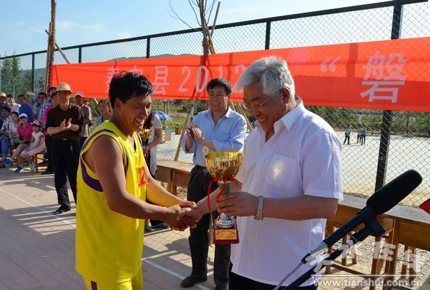 據(jù)了解,為充分展示縣直機(jī)關(guān)廣大干部職工的精神風(fēng)貌,豐富職工的業(yè)余文化生活,開展全民健身活動(dòng),增強(qiáng)干部職工的凝聚力和團(tuán)結(jié)精神,由縣總工會(huì)、縣教體局主辦,甘肅磐業(yè)農(nóng)用化工有限公司冠名贊助舉辦了秦安縣2012年“磐業(yè)杯”縣直機(jī)關(guān)職工籃球賽。本次籃球賽共有10支代表隊(duì)參賽,分別是縣委、政協(xié)代表隊(duì),人大、政府代表隊(duì),政法系統(tǒng)代表隊(duì),金融系統(tǒng)代表隊(duì),文化衛(wèi)生系統(tǒng)代表隊(duì),人社人口代表隊(duì),建設(shè)系統(tǒng)代表隊(duì),財(cái)稅代表隊(duì),農(nóng)口系統(tǒng)代表隊(duì),工信招商代表隊(duì)。經(jīng)過4天的激勵(lì)角逐,比賽最終決出了前四名,政法系統(tǒng)代表隊(duì)、文化衛(wèi)生系統(tǒng)代表隊(duì)、建設(shè)系統(tǒng)代表隊(duì)、人大、政府代表隊(duì)分別奪得了本次比賽的第一名、第二名、第三名、第四名。