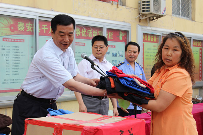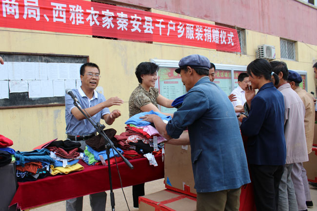為了深入開展“聯(lián)村聯(lián)戶、為民富民"活動,以實際行動投身聯(lián)村聯(lián)戶、為民富民行動,展示工商系統(tǒng)開展為民服務創(chuàng)先爭優(yōu)活動的成效。6月25 日下午,甘肅省工商局聯(lián)和西雅衣家(中國)商業(yè)有限公司在秦安縣千戶鄉(xiāng)政府大院內(nèi)舉行捐贈活動。參加捐贈儀式的嘉賓有:省工商局黨組成員紀檢組長李平安、財審處處長余新立等一行6人、縣人大副主任劉小琴、縣工商局局長馬念平、千戶鄉(xiāng)政府全體領(lǐng)導班子、鄉(xiāng)村干部及千戶鄉(xiāng)曹灣村、千戶村、天城堡村部分受贈村民,共120余人參加了捐贈活動。捐贈儀式由鄉(xiāng)黨委書記馮銀才主持。