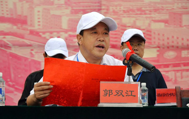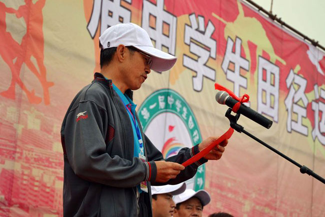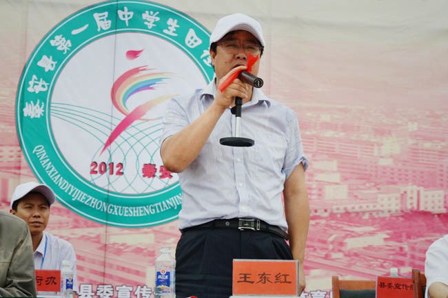 (縣委書記王東紅宣布秦安縣第一屆中學(xué)生田徑運動會開幕)