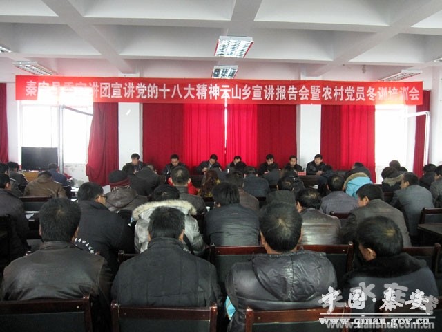為了幫助云山鄉(xiāng)廣大黨員干部群眾深刻領(lǐng)會(huì)黨的十八大精神,全面準(zhǔn)確把握精神實(shí)質(zhì),按照縣委安排,12月17日,縣委宣講團(tuán)一行3人來到云山鄉(xiāng),召開黨的十八大精神宣講報(bào)告會(huì)暨農(nóng)村黨員冬訓(xùn)會(huì)議,縣委外宣辦副主任馮喜成、縣委組織部干部卜乾斌和縣委黨校講師張秀鵬同志及云山鄉(xiāng)黨政領(lǐng)導(dǎo)班子全體成員、全體鄉(xiāng)村干部、遠(yuǎn)教站點(diǎn)管理員和鄉(xiāng)屬各單位負(fù)責(zé)人共200余人參加了會(huì)議,會(huì)議由云山鄉(xiāng)黨委書記蔡向增同志主持。