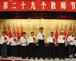 21年的耕耘和追求,鑄就無怨無悔的師魂。他安于清貧生活,超越平庸;他不忘病危的父親生命臨終時的叮嚀“當老師要對得住自己的良心”,向來平靜做事,甘為人梯。神圣的使命感使心中永遠裝著學(xué)生,他就是秦安縣第四中學(xué)教師張杰!疤煊胁粶y風云”,一次車禍致使他頭部、腿部多處重傷,全身多處粉碎性骨折,因失血過多當場昏迷,生命垂危。當?shù)厝罕姾吐動嵹s來的師生把他送往醫(yī)院,學(xué)生們痛哭流涕,周圍的群眾含著淚花說:“好人咋就沒好報呢?”“老天爺咋就不睜眼呢?”由于傷勢嚴重,轉(zhuǎn)到天水治療。在住院期間,每天都有幾十人來看望他,更多的是他教過的學(xué)生和他們的家長?粗麄冋嬲\的目光,他真正懂得了一個教師人生價值,躺在病床上,他只有一個想法就是一定要站在講臺上。他說:“要倒就倒在講臺上,決不能倒在手術(shù)臺上。”憑著這種堅定的信念和頑強的毅力,他終于挺了過來。從死神手里撿回了這條差點兒就不屬于自己的生命。在親人學(xué)校和社會群眾的關(guān)懷下,在孩子們熱切的盼望中,他漸漸的康復(fù)了,帶著殘存在自己體內(nèi)的鋼板,帶著一身的傷痛,憑著對黨的教育事業(yè)的忠誠和對學(xué)生的熱愛,他終于又站到了三尺講臺上。作為一個從教多年的黨員教師,張杰熱愛教育事業(yè)、熱愛學(xué)生,他始終以一個黨員教師的標準嚴格要求自己,以“全國優(yōu)秀教師” 和“全國優(yōu)秀班主任”的崇高榮譽鞭策著自己,以實際行動實踐著自己的人生諾言。