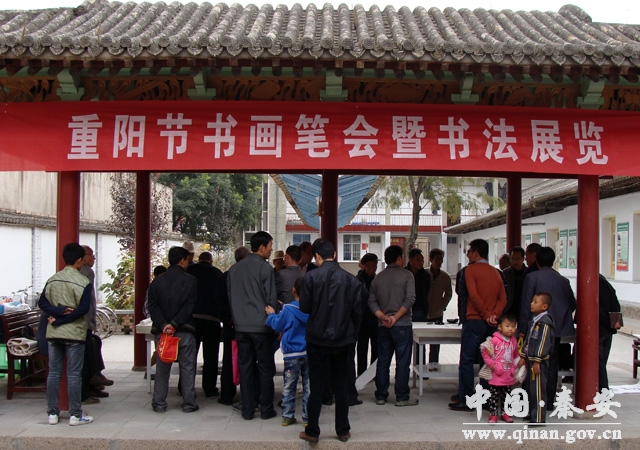 秋色撩人神氣爽,紅葉翩然菊蕊香。2013年10月13日,由縣文聯(lián)、縣文化館、縣書協(xié)、縣美協(xié)聯(lián)合主辦的“重陽節(jié)書畫筆會(huì)暨書法展覽”在文化館舉行。