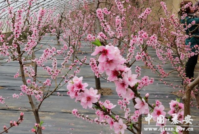 眼下,秦安縣大棚油桃已全面進(jìn)入盛花期,粉紅色的桃花使大棚里處處彌漫著春天的氣息。一株株油桃亭亭玉立,鮮艷的桃花競相綻放;細(xì)細(xì)的枝條,與粉紅的桃花相映成趣,散發(fā)出來的陣陣淡香令人陶醉。不少游客也慕名來到大棚內(nèi)攝影觀光盛開的桃花,來觀賞的人們頻頻舉起手中的相機(jī)或手機(jī),按動(dòng)快門,抓拍這人面桃花相映紅的獨(dú)特美景。