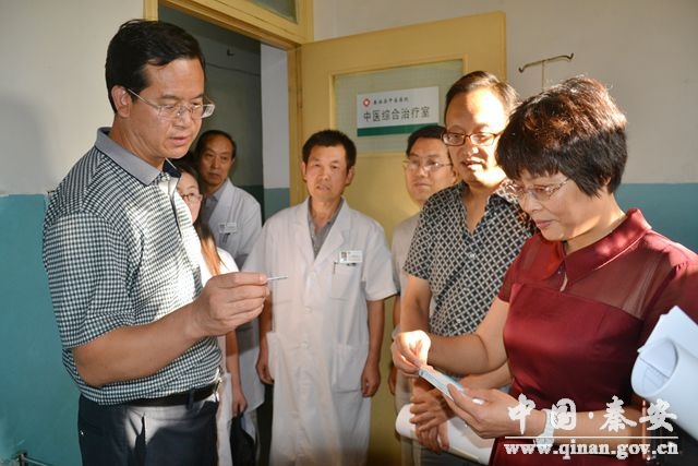 8月27日,由甘肅省中醫(yī)學(xué)院附屬醫(yī)院黨委副書記、紀(jì)委書記、主任醫(yī)師汪龍德帶隊(duì)的全國(guó)基層中醫(yī)藥工作先進(jìn)單位復(fù)審評(píng)估組一行5人來(lái)秦安,就秦安縣全國(guó)農(nóng)村中醫(yī)藥工作先進(jìn)單位及基層中醫(yī)藥服務(wù)能力提升工程進(jìn)行了復(fù)審和評(píng)估驗(yàn)收。市衛(wèi)生局副局長(zhǎng)李姝,縣委副書記、縣長(zhǎng)程江芬,縣委常委、宣傳部長(zhǎng)李愛(ài)仙,縣政府副縣長(zhǎng)羅增芳,縣政協(xié)副主席馬振寰隨同檢查。