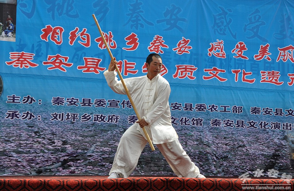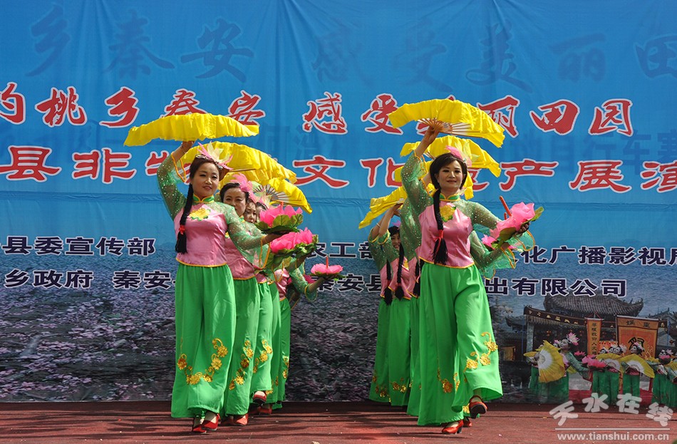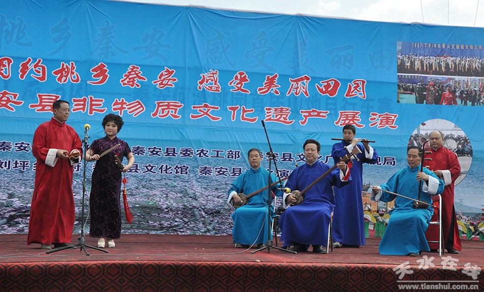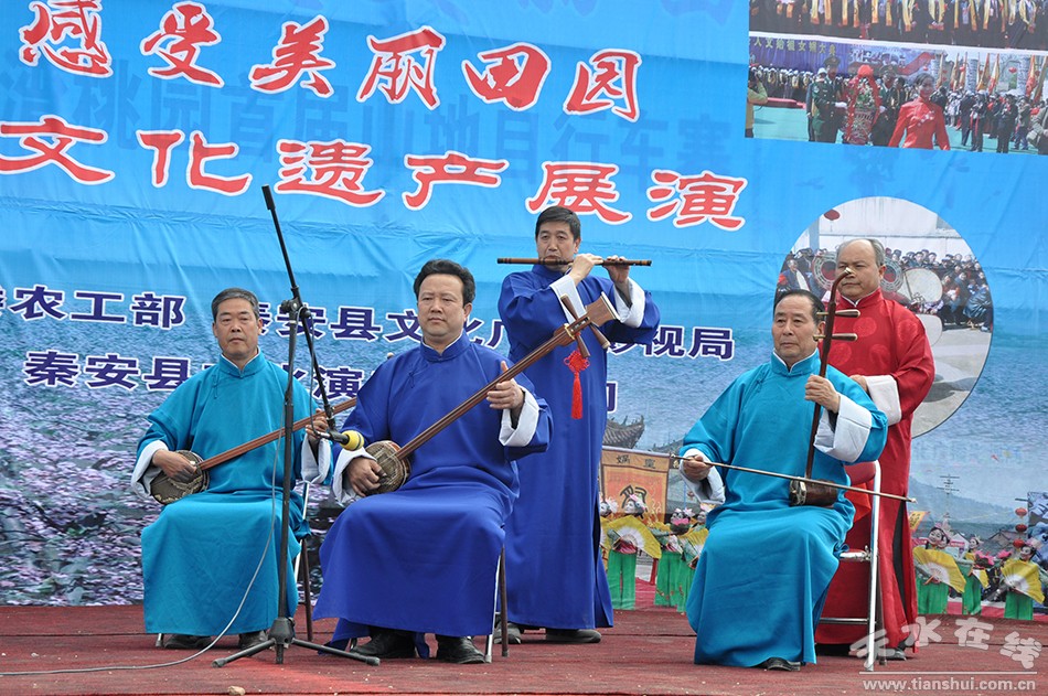 4月19日,秦安縣在“中國(guó)美麗田園·秦安何灣桃花景觀”舉行非物質(zhì)文化遺產(chǎn)展演。