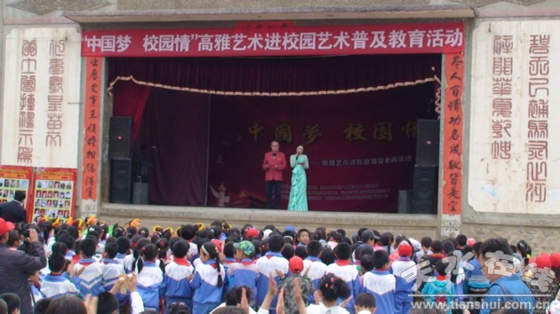 據(jù)了解,天水市教育局今年確定組織開展高雅藝術進校園藝術普及教育活動五次,之前已進行兩次,這次之所以選在秦安縣隴城鎮(zhèn),是因為隴城鎮(zhèn)為“中國歷史文化名鎮(zhèn)”,具有濃郁的鄉(xiāng)土文化氛圍。
