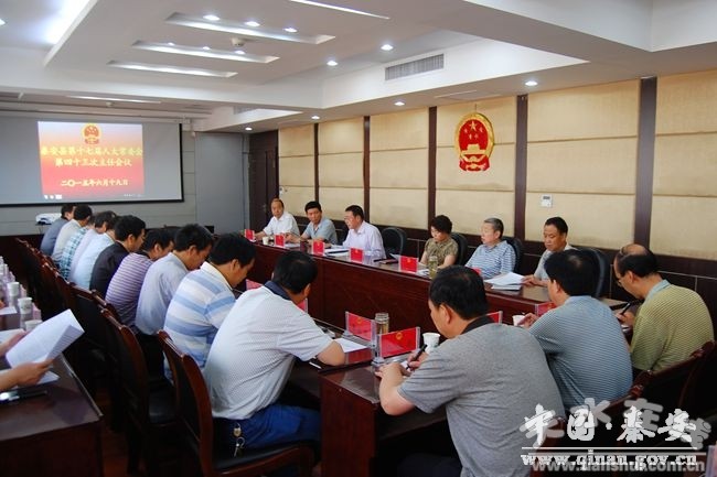 6月19日,秦安縣第十七屆人大常委會(huì)第四十三次主任會(huì)議在縣行政中心八樓人大會(huì)議室召開(kāi),會(huì)議由縣人大常委會(huì)主任郭海軍主持,縣人大常委會(huì)副主任劉小秦、張雙喜、楊尚武、宋捷、張來(lái)祿出席會(huì)議?h政府辦公室、環(huán)保局、住建局、水務(wù)局、公安局、交通局、國(guó)土局、商務(wù)局、農(nóng)業(yè)局、綜合執(zhí)法局、衛(wèi)生局、工商局、工信局、食藥監(jiān)局、畜牧獸醫(yī)局、縣人大常委會(huì)辦公室及各工委負(fù)責(zé)人列席了會(huì)議。會(huì)議聽(tīng)取了縣環(huán)境保護(hù)局關(guān)于貫徹落實(shí)《縣人大常委會(huì)關(guān)于對(duì)縣環(huán)境保護(hù)局工作的評(píng)議意見(jiàn)》情況的報(bào)告。
