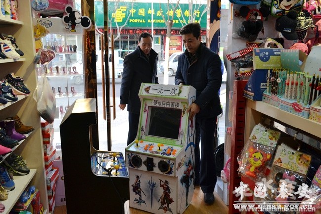 近日,接群眾舉報(bào)稱,在秦安四小門口“迪士尼”營(yíng)業(yè)店有兩臺(tái)投幣游戲機(jī)吸引了部分學(xué)生?h文化市場(chǎng)綜合執(zhí)法大隊(duì)接到舉報(bào)后,立即派出執(zhí)法人員深入現(xiàn)場(chǎng)檢查和勘驗(yàn)。經(jīng)細(xì)致查驗(yàn),舉報(bào)事實(shí)清楚,證據(jù)確鑿。按照《娛樂(lè)場(chǎng)所管理?xiàng)l例》第七條規(guī)定,依法進(jìn)行了查處和取締。
