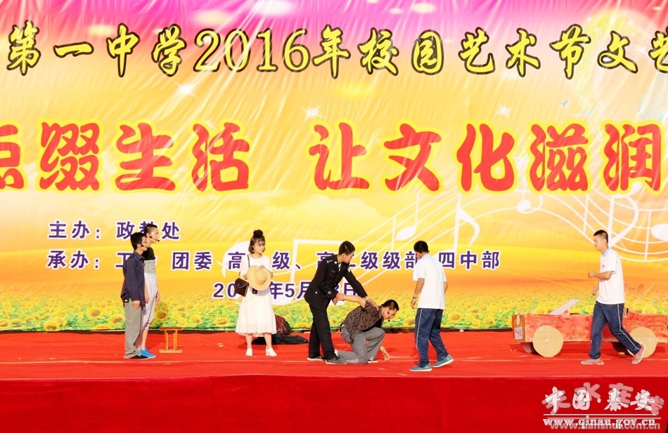 為了豐富校園文化生活,大力推進(jìn)素質(zhì)教育,營造積極、健康、向上的校園人文環(huán)境,促進(jìn)師生身心健康,5月28日下午,秦安縣第一中學(xué)以“用藝術(shù)點(diǎn)綴生活·讓文化滋潤心靈”為主題的2016年校園藝術(shù)節(jié)文藝演出在學(xué)校田徑場舉辦。廣大師生們載歌載舞,展示了才藝,張揚(yáng)了個(gè)性,活躍了校園文化氛圍。