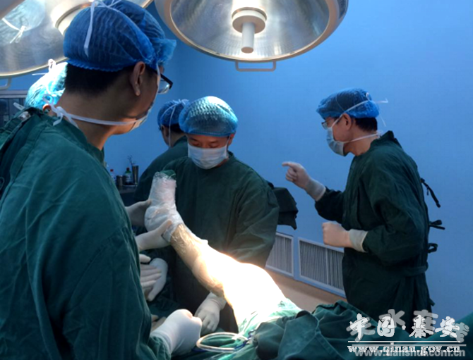 上午9時,骨科手術(shù)示范,骨科大型義診和護理知識講座活動同時展開。夏亞一教授現(xiàn)場示范主持完成5臺人工全膝關(guān)節(jié)置換手術(shù),吳萌副主任醫(yī)師現(xiàn)場示范膝關(guān)節(jié)鏡手術(shù),周海宇副主任醫(yī)師,張海鴻副主任醫(yī)師現(xiàn)場示范腰椎手術(shù)。在共計10臺手術(shù)過程中,專家們精湛的醫(yī)技讓秦安縣人民醫(yī)院骨科醫(yī)生們受益匪淺。